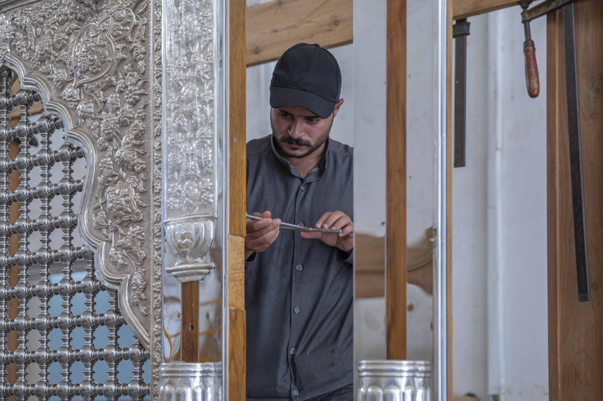 | النـص : بغداد ـ الدستور أنهت ملاكات قسم صناعة شبابيك الأضرحة وأبوابها في العتبة العباسية المقدسة، أعمال واجهة شباك الصحن العلوي المطهر.ونقل بيان لاعلام العتبة العباسية عن رئيس القسم ناظم الغرابي قوله، إنّ "ملاكات قسم صناعة شبابيك الأضرحة وأبوابها، أنهت أعمال واجهة شباك الصحن العلوي المطهر، وستُثبت في صحن مرقد الإمام علي (عليه السلام)".وأضاف، أنّ "الواجهة تتألف من إطار من الخشب يبلغ ارتفاعه 257 سم وبعرض 155سم، وداخل الإطار مشبك معدني (دهنة) بارتفاع 215 سم وعرض 119 سم، ويحاذيه في جهته اليمنى واليسرى عمود زخرفي وعمود آخر تستند عليه، وصُنع المشبك بحرفية ومهنية عاليتين تصميمًا وتنفيذًا وبزخارف ونقوش مستوحاة من العتبة العلوية المقدسة".وأشار إلى، أنّ "واجهة المشبك ستُثبت في أحد أواوين الصحن العلوي المطهر وبإشراف ملاكات القسم".