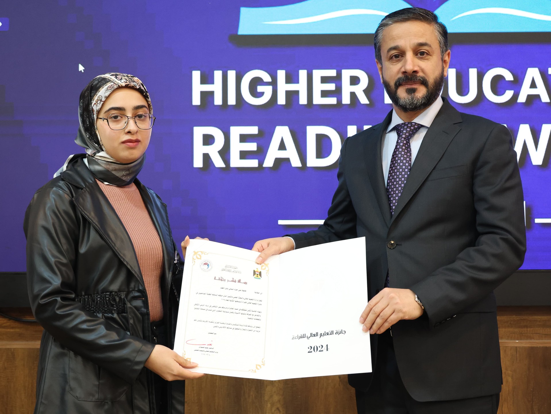 كرم وزير التعليم العالي والبحث العلمي الدكتور نعيم العبودي الفائزين بجائزة التعليم العالي للقراءة في نسختها الثانية للعام 2024.وقال في كلمته خلال حفل التكريم أن مشروع الجائزة الذي تبنته وزارة التعليم العالي والبحث العلمي للعام الثاني على التوالي فتح المجال واسعا للمراجعة وتعضيد سياقات الثقافة العامة، مشيرا الى أن طلبة الجامعات شاركوا وأسهموا في استيعاب مدلولاتها العلمية والثقافية وتكاملت لديهم مقتضيات المسؤولية الثقافية التي تجسد هوية المجتمع وامتداداتها ماضيا وحاضرا ومستقبلا.واكد وزير التعليم على أهمية هذه البرامج والفعاليات في الدراسات الجامعية الأولية وتمهيد الانتقال بها من حيز المسابقات إلى بيئة البحوث العلمية التي تحقق جدوى الشهادة الجامعية التي ينبغي أن تعالج ما تتعرض له المجتمعات من تحديات وأخطار وتترك أثرا واضحا يختصر الجهد والوقت على صعيد إنتاج الحلول وتفكيك المشكلات.وشهدت فعاليات الحفل كلمة اللجنة المنظمة التي ألقتها مدير عام دائرة البحث والتطوير لبنى خميس مهدي فيما كرم وزير التعليم العالي الطلبة الفائزين بمئة مليون دينار واللجنة المنظمة بشكر وتقدير تثمينا لجهودهم في تنظيم إجراءات المسابقة.