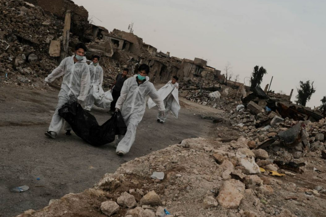 العثور على رفات أربعة مدنيين خلال رفع أنقاض مدرسة مدمرة في ناحية عيونات غرب الموصل