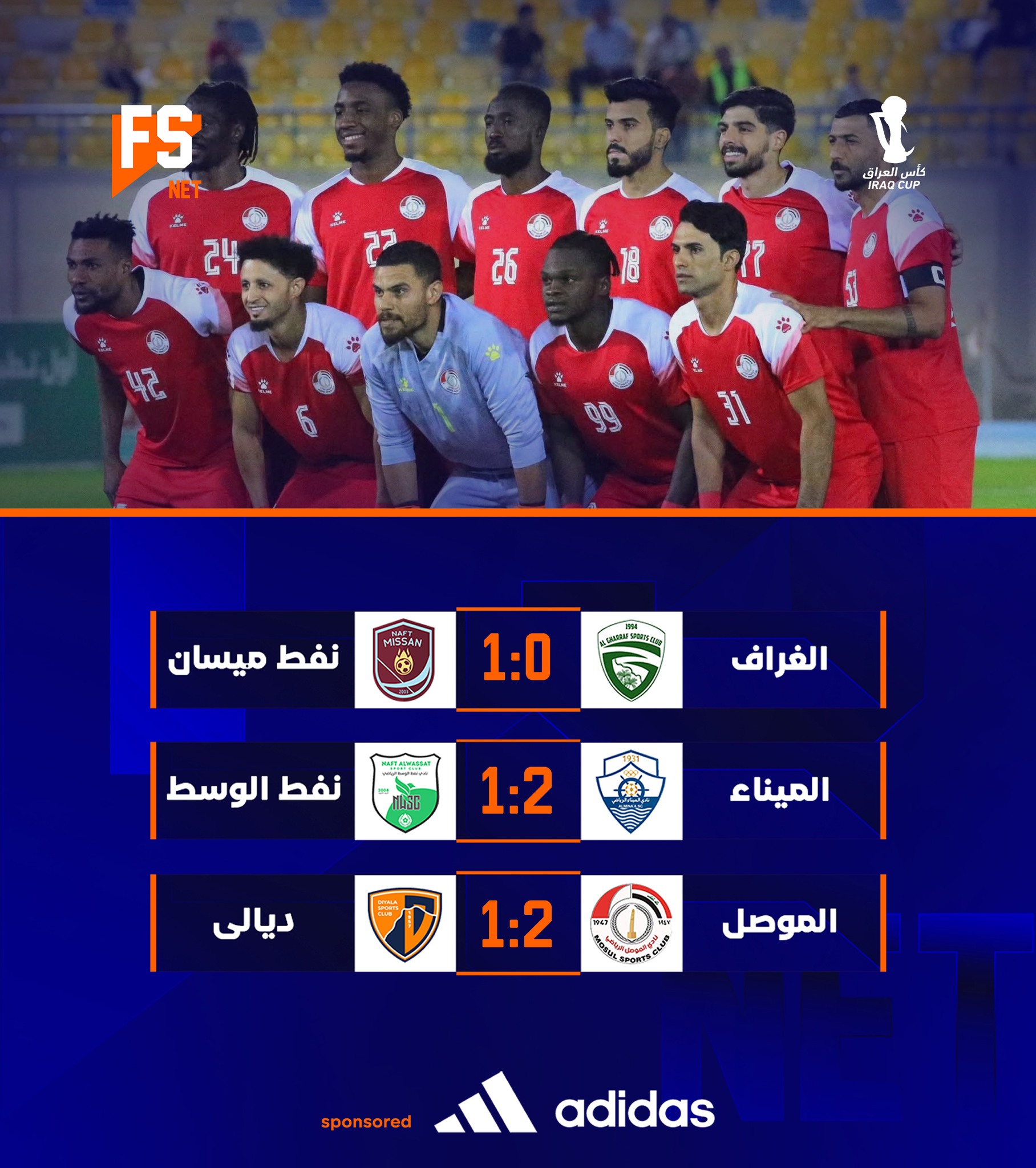 تأهل نفط ميسان والميناء والكرمة للدور الـ16 من بطولة كأس العراق